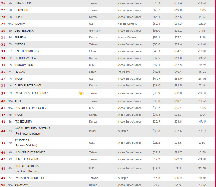 - A Vivotek recuperou a posição que havia perdido no ano passado;